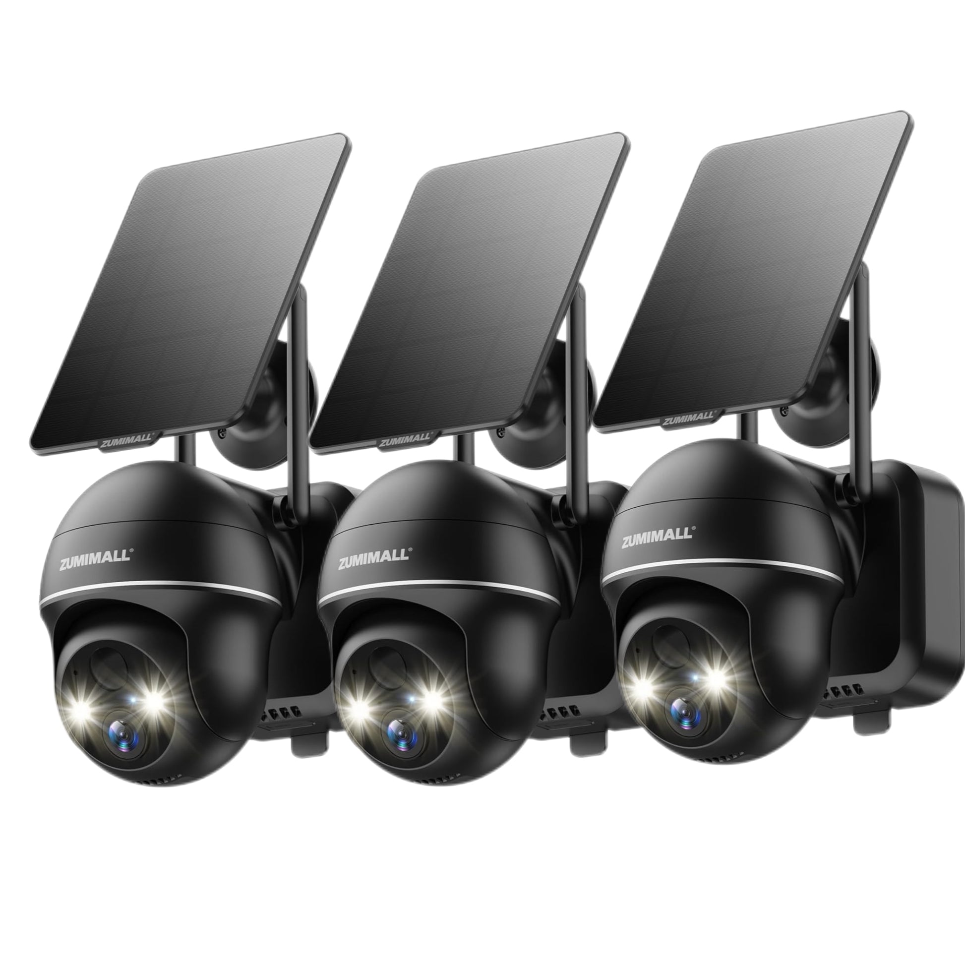 ZUMIMALL 2k Solar-Außenkamera, 360° PTZ, Akku, kabellos, 2,4 G WLAN, Sicherheitskamera – GX2BK (3er-Pack)