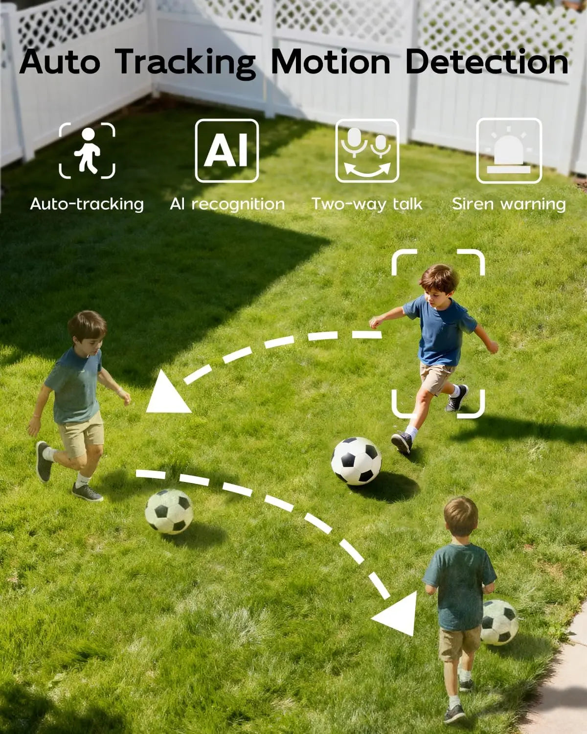 360°Auto Tracking, Motion Detection, 2-Way Audio, Weatherproof, Color Night Vision