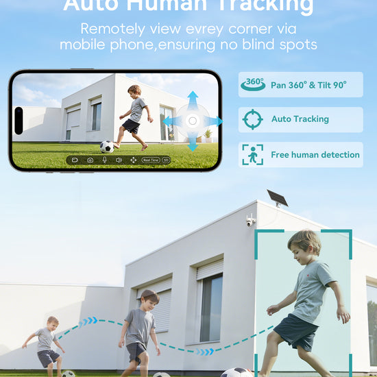 Auto-Tracking 360° PTZ - The wireless outdoor camera automatically follows and records moving objects with 355° pan and 90° tilt, ensuring full coverage with no blind spots—no manual control needed.