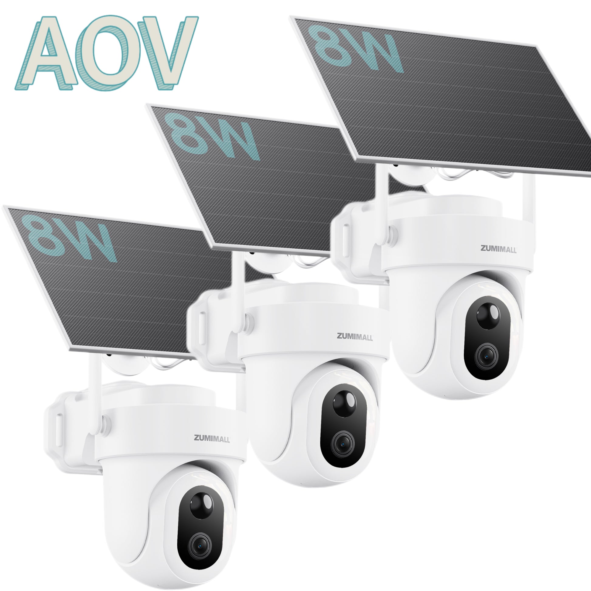 2K AOV Solar-Powered Wireless Security Camera, 24/7 Recording--A60-3Pack
