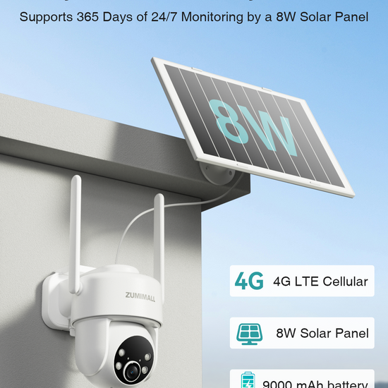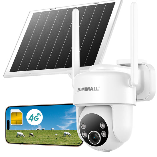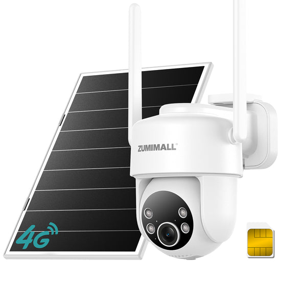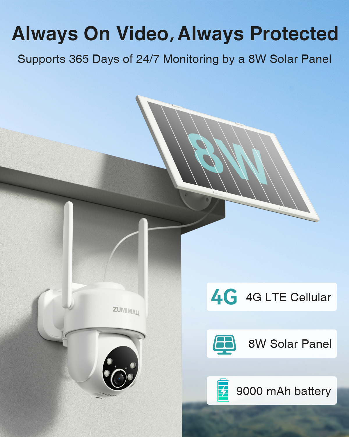 ZUMIMALL 4G LTE AOV Solar Security Camera - No WiFi, No Power, 24/7 Recording